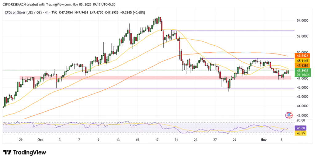 Silver Gains Above $47.50 on Safe-Haven Demand.