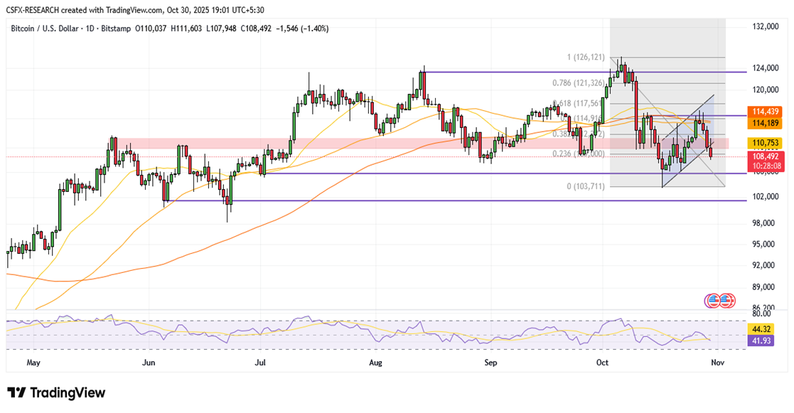 A: BTC/USD remains bearish below $110,000, with a potential for further downside unless buyers regain control above $111,000.