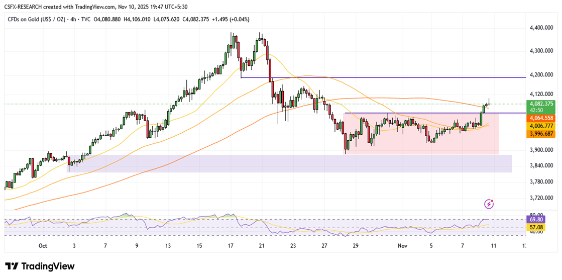 However, optimism surrounding a potential resolution of the U.S. government shutdown may limit safe-haven inflows. U.S. senators are set to vote on a proposal that could end the longest shutdown in American history, a move that could briefly weigh on gold. Meanwhile, easing U.S.–China trade tensions—as the two sides move closer to formalizing an agreement—could also temper demand for defensive assets in the short term.