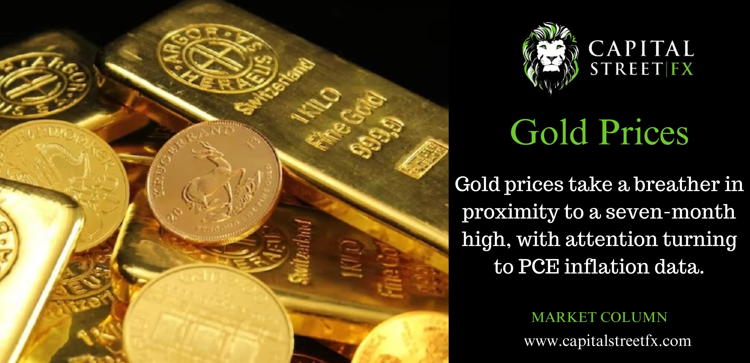 Gold prices take a breather in proximity to a seven-month high, with attention turning to PCE inflation data.