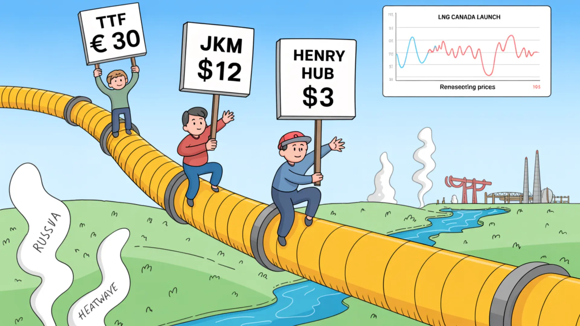 Global gas prices remain confined within a narrow range despite recent geopolitical developments. Dutch TTF prices hover in the mid-to-low €30s/MWh, Asian JKM spot prices stay just under $12/mmBtu, and US Henry Hub levels hold near $3.