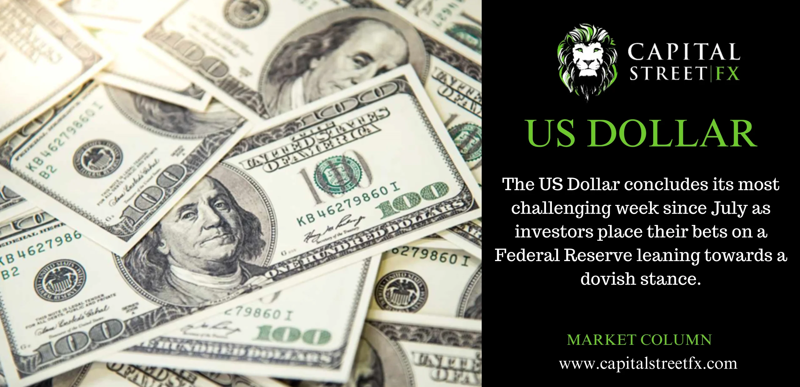 The US Dollar concludes its most challenging week since July as investors place their bets on a Federal Reserve leaning towards a dovish stance.