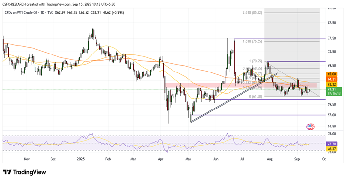 Crude oil posts modest gains on Monday, edging toward $63.00 after rebounding from Friday’s $61.50 lows. Reports of Ukrainian drone strikes on major Russian oil plants offered support, though near-term demand concerns cap upside momentum.